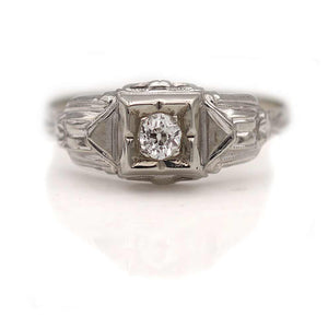 Art Deco .18 CTW Old Mine Cut Diamond Vintage Engagement Ring