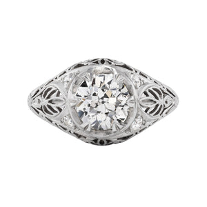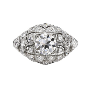 Art Deco 1.42 CTW Old European Cut Diamond Platinum Antique Engagement Ring GIA J/SI2