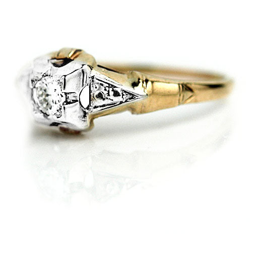 Mid-Century .20 CTW 1950s Two Tone European Cut Vintage Diamond Engagement Ring