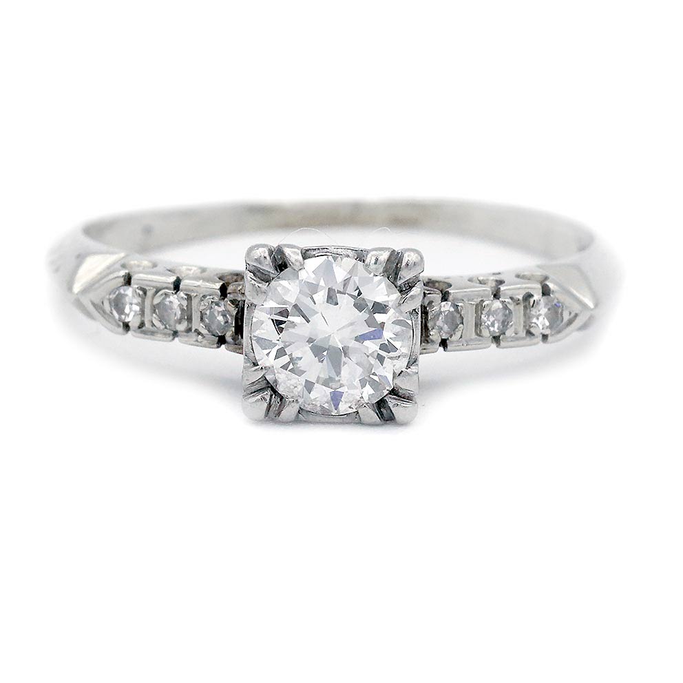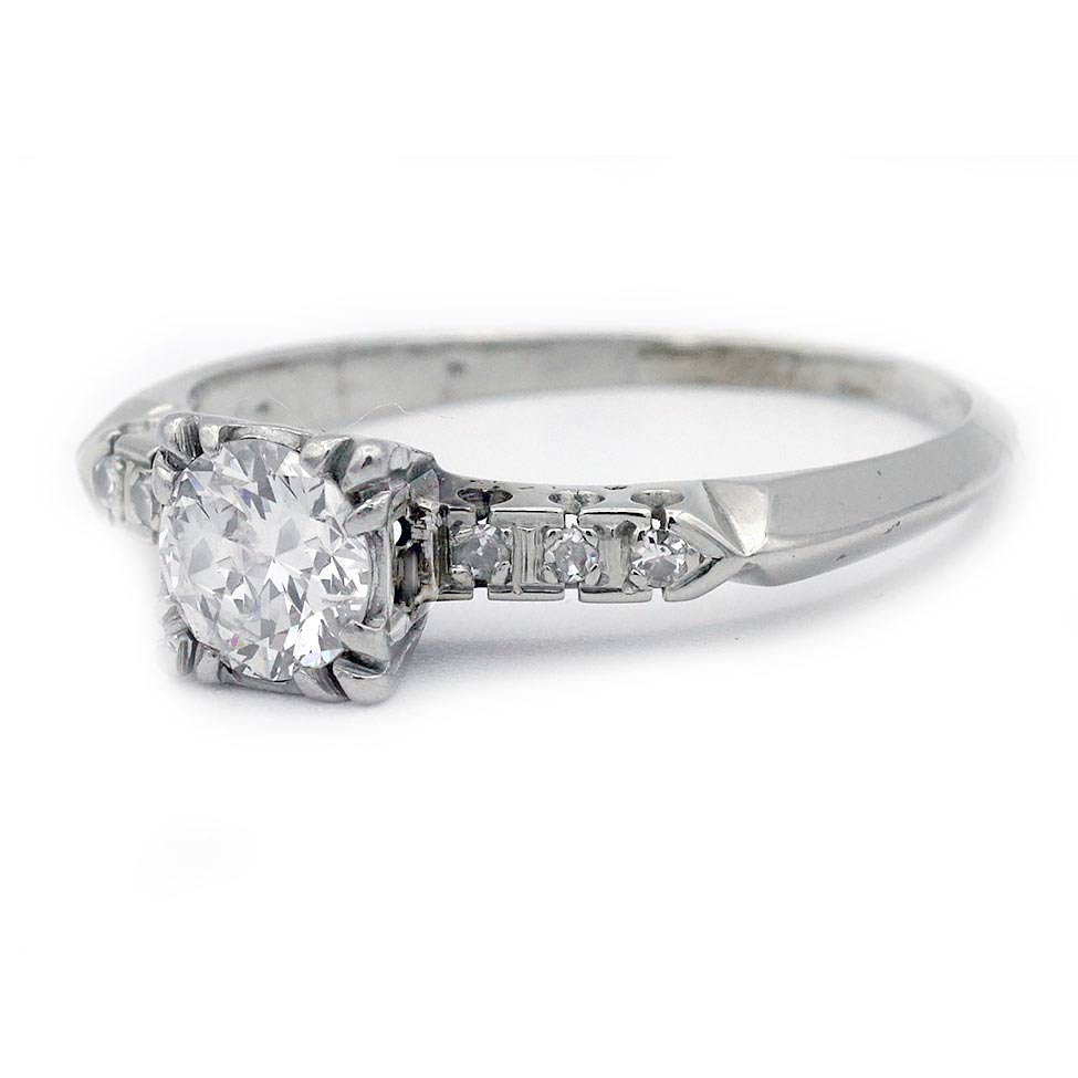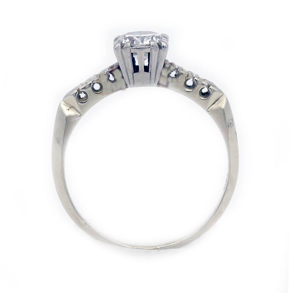 Vintage 1950s .70ct Transitional Cut Diamond Engagement Ring | AGI H SI2 14k White Gold Fishtail Setting