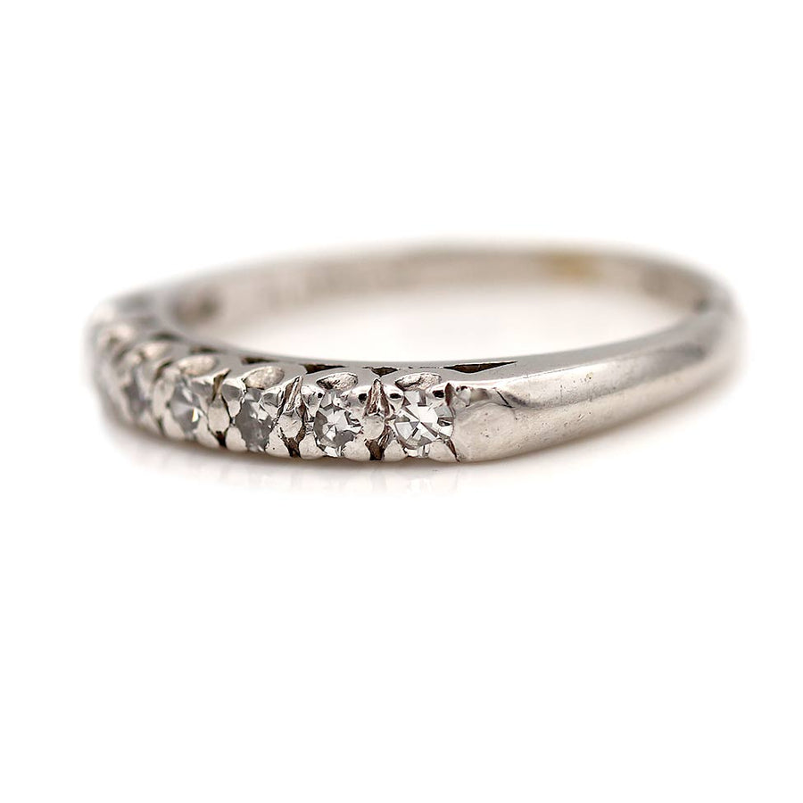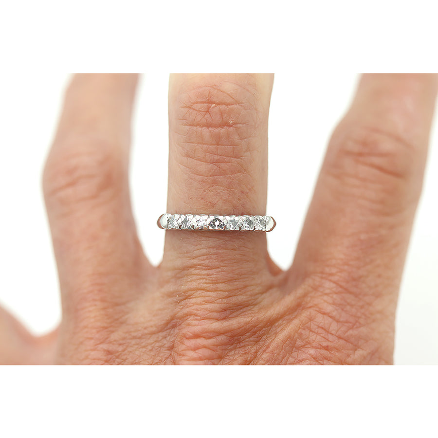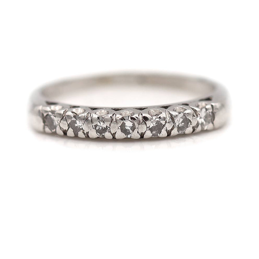 Antique 7 Stone Prong Set Platinum and Diamond Stacking Wedding Band