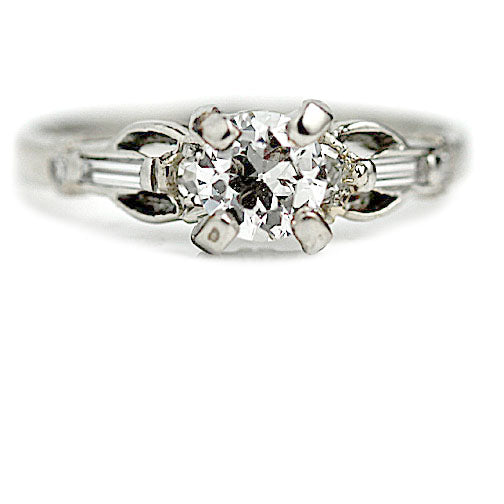 Vintage .68 CTW Diamond Mid-Century Engagement Ring with Baguettes