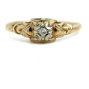 Mid-Century .12 CTW 1950s 14K Two Tone Vintage Diamond Engagement Ring