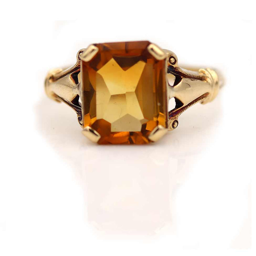 2.20 Carat Victorian Square Cut Citrine Engagement Ring
