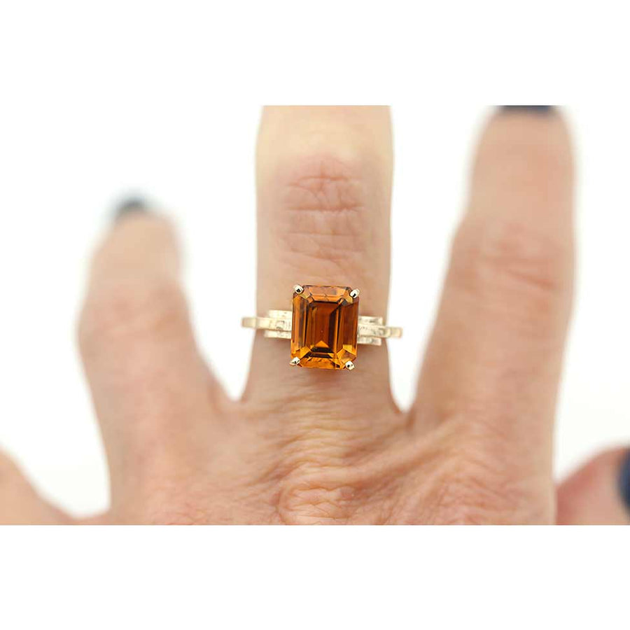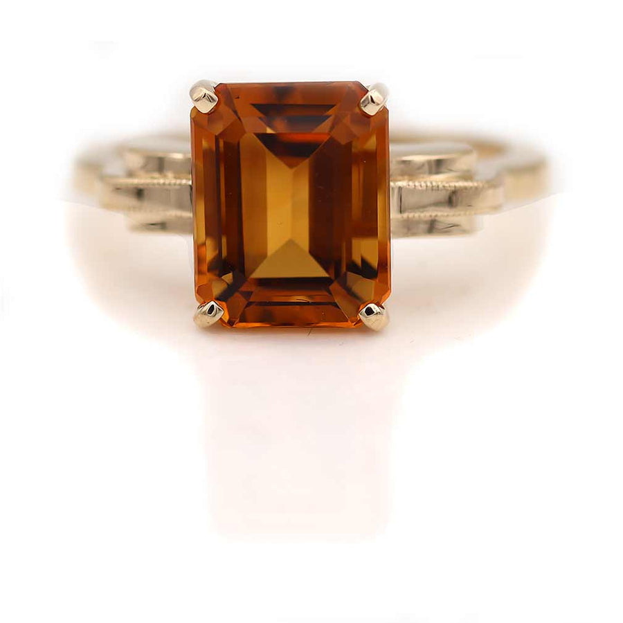 3.01 Carat Victorian Style Emerald Cut Citrine Engagement Ring