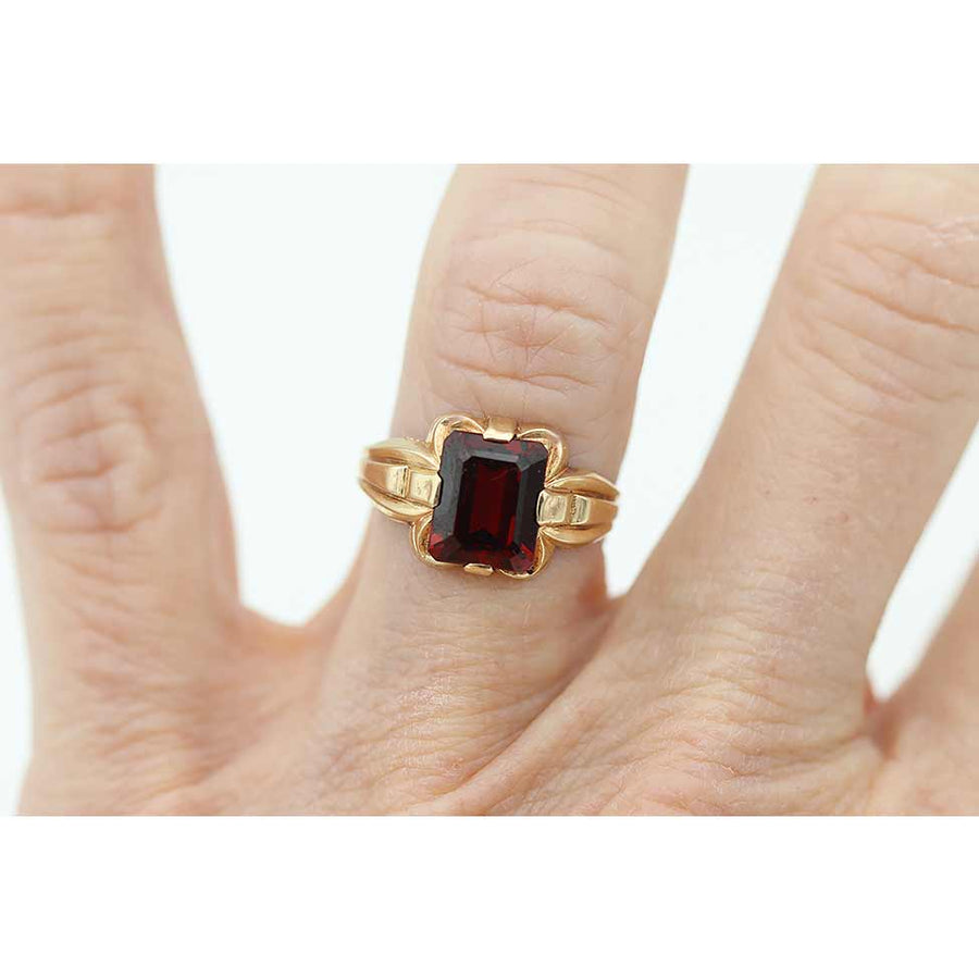 The Arnheim ring is an authentic Victorian garnet engagement ring, circa 1900's, featuring a natural vintage square cut garnet weighing 2.00 carat. Beautifully crafted in 10 kt yellow gold, and accentuated with delicate filigree engravings, this ring is perfect to wear on either hand. In very good condition. A stunning non-diamond engagement ring.