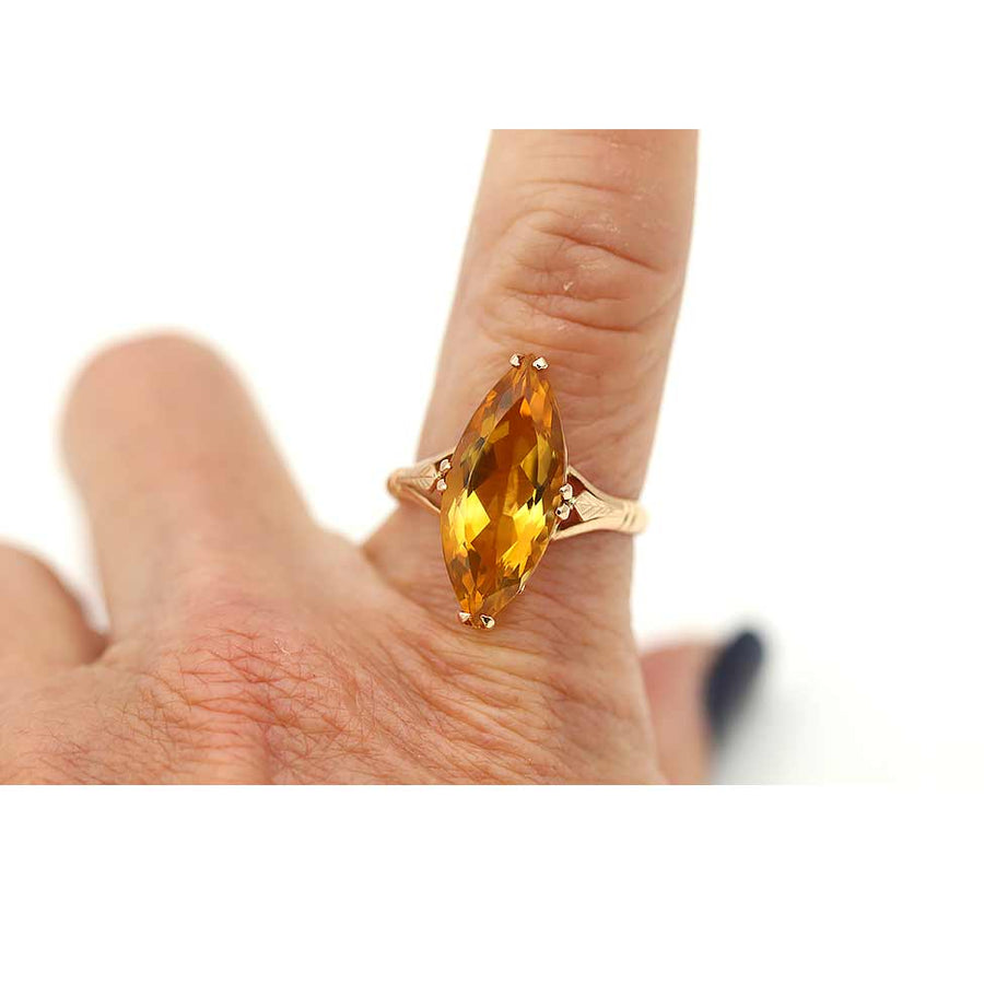 Victorian Marquise Cut Citrine Engagement Ring Circa 1900s 3.50 Carat
