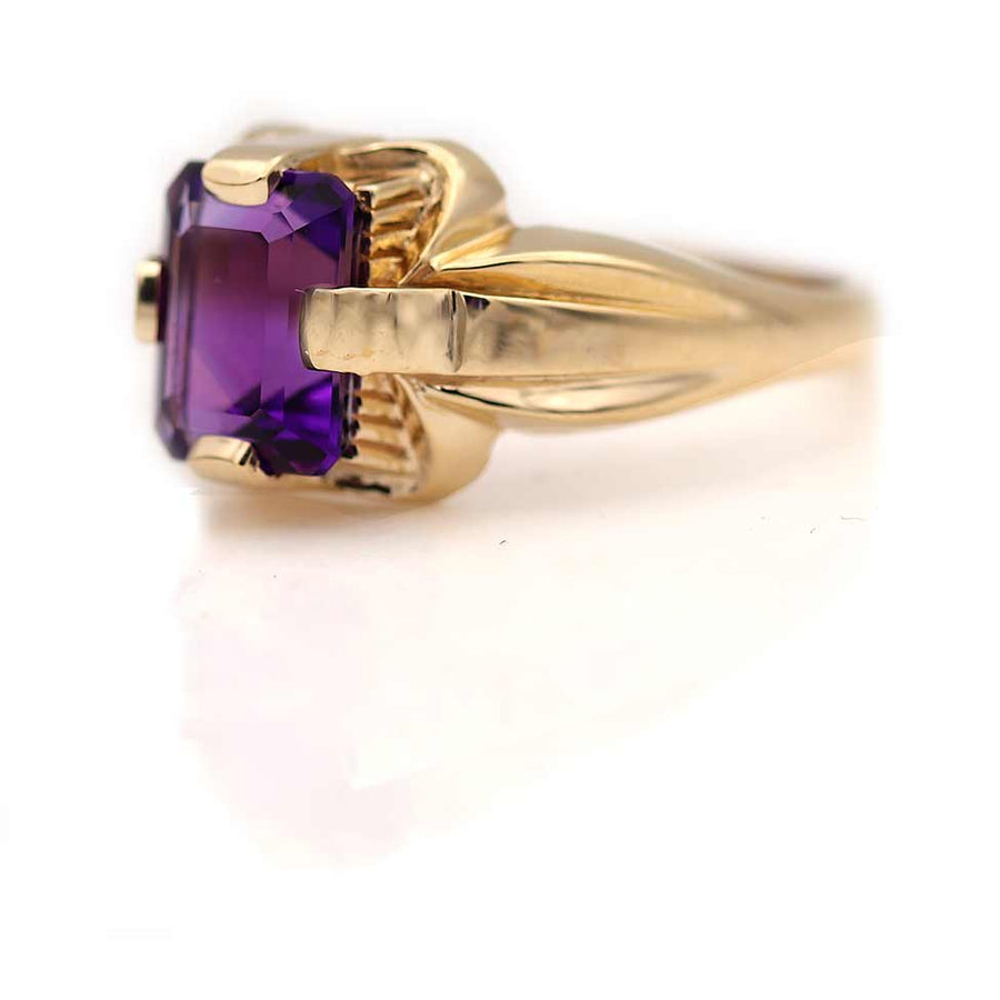 The Gourmet ring VDR.com made Victorian-inspired VintageDiamondRing.com-made engagement ring, using an authentic amethyst circa 1970's. This ring boasts a natural intense purple 1.40 carat emerald cut amethyst, beautifully crafted in recycled 14 karat yellow gold, and accentuated with delicate filigree engravings. This is an exact replica of an original Victorian engagement ring we once owned. Made with love in NYC. Ready to ship.