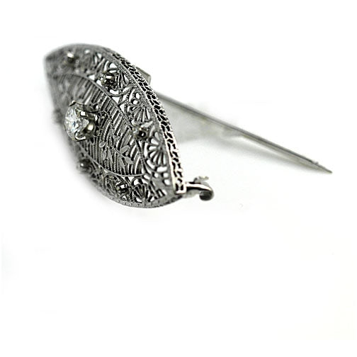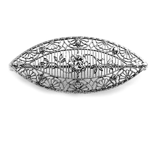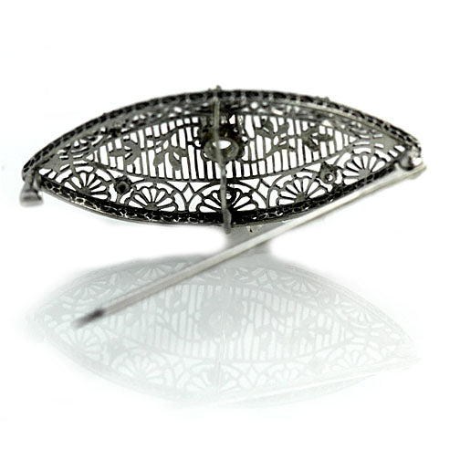 Art Deco .48 CTW Transitional Cut Diamond Platinum 14 Karat White Gold Brooch