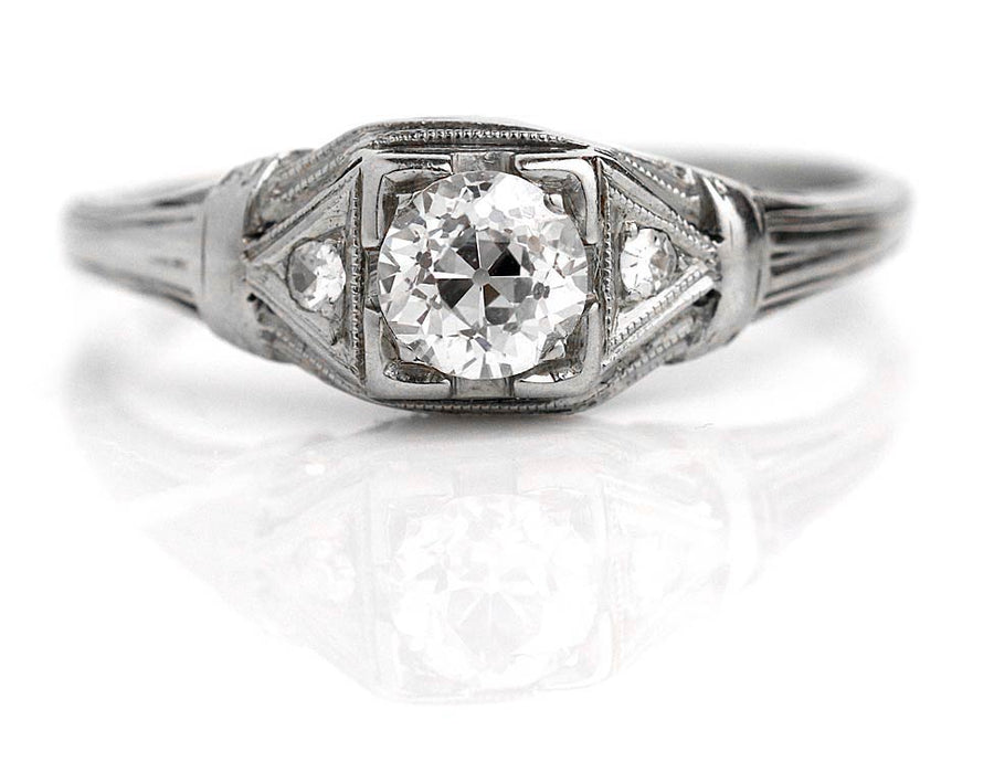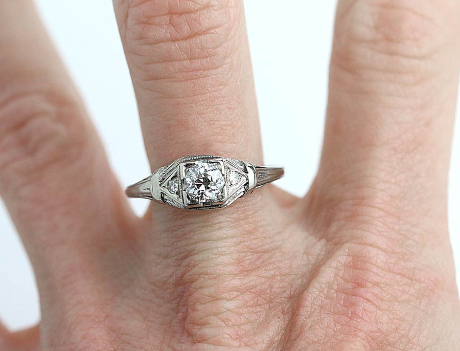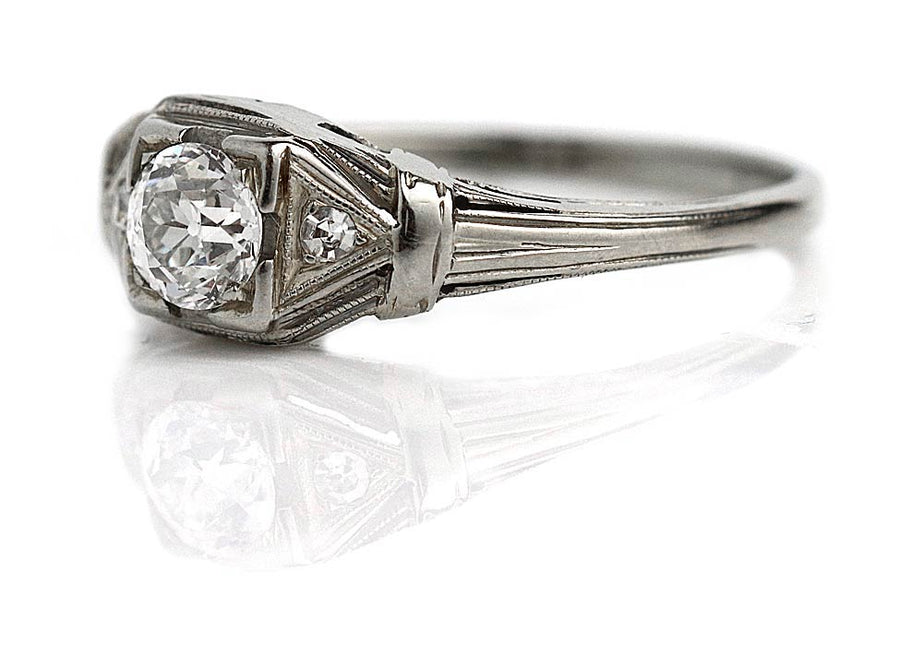Art Deco .54 CTW Old Mine Cut Diamond Vintage Engagement Ring Circa 1930s