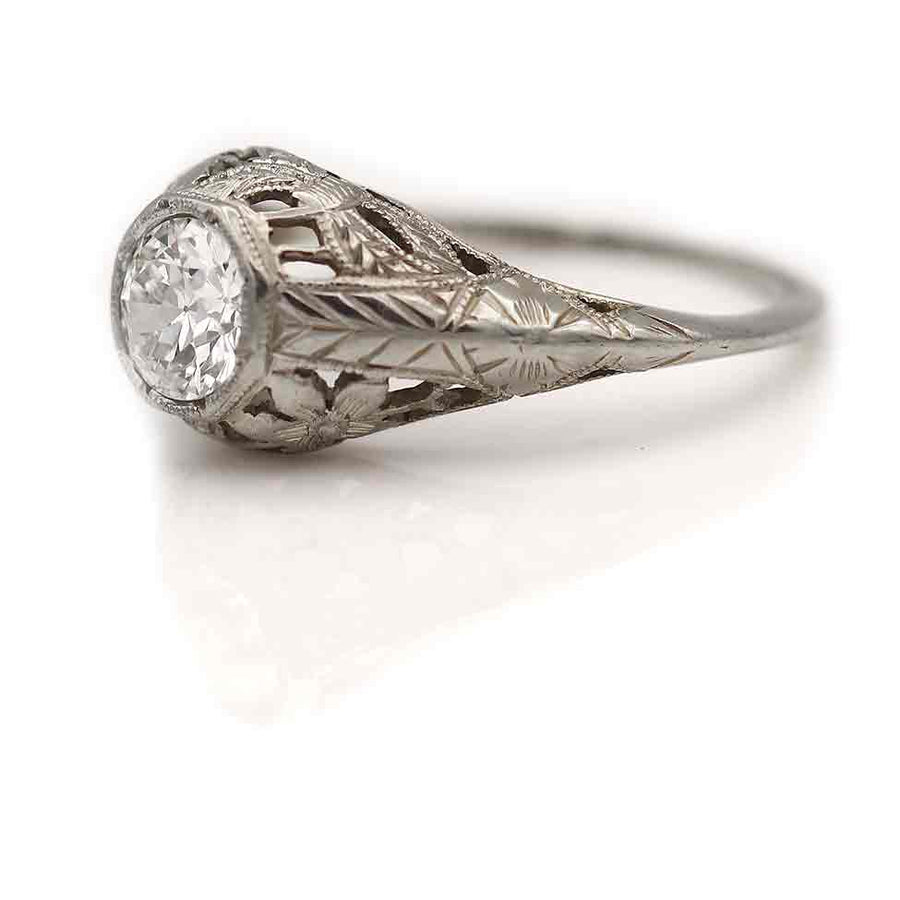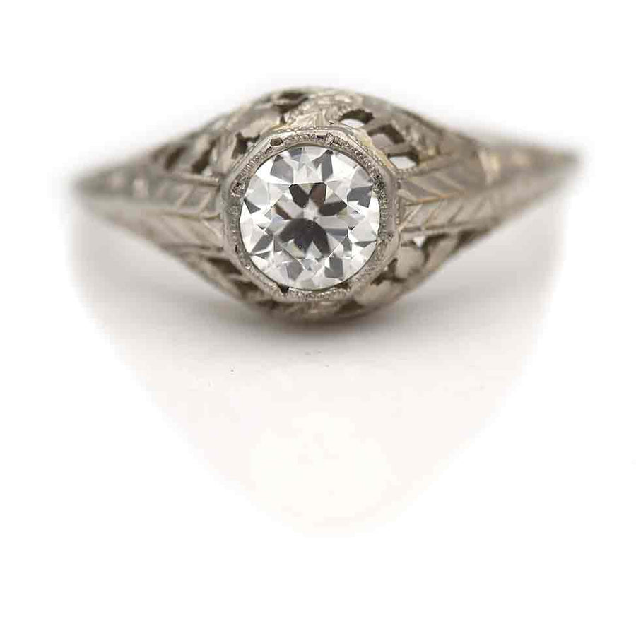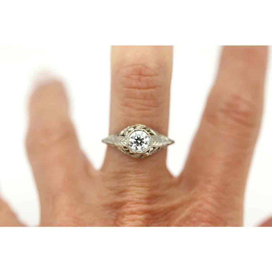 Art Deco .55 CT 18 Karat White Gold Solitaire Vintage Engagement Ring