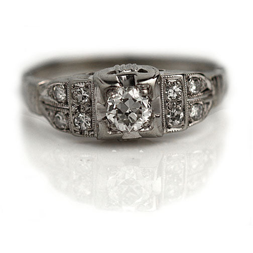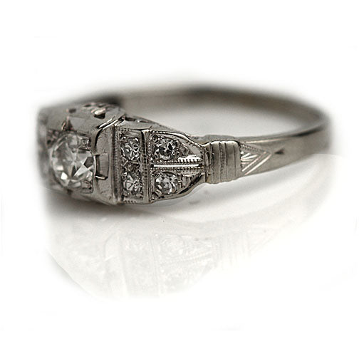 Vintage .46 CTW Art Deco Diamond Engagement Ring with Tiered Side Stones