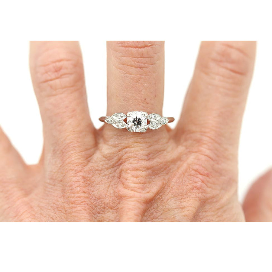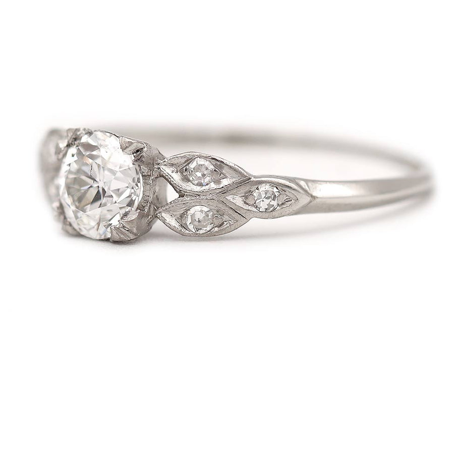 Vintage .89 CTW Old European Cut Diamond Platinum Art Deco Engagement Ring GIA G/SI2