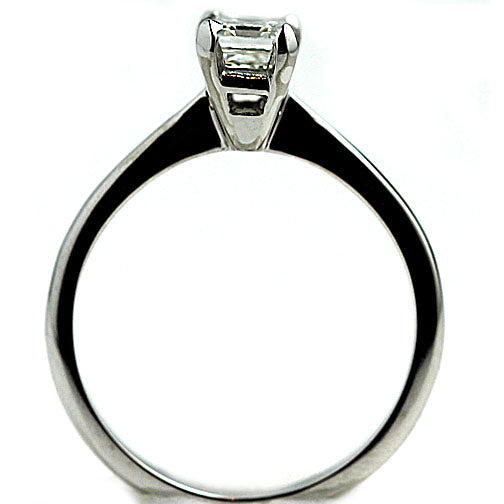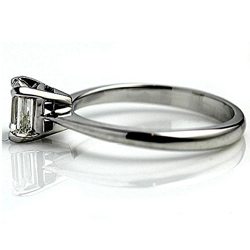 The Milan ring is an authentic vintage diamond ring circa 1980's. The ring features an icy-white GIA certified .81 carat emerald cut diamond of D color, SI1 clarity. The diamond stands tall and proud in a classic 4 prong 14 karat white solitaire setting. A timeless solitaire ring with a delicate tapered band. In excellent condition.