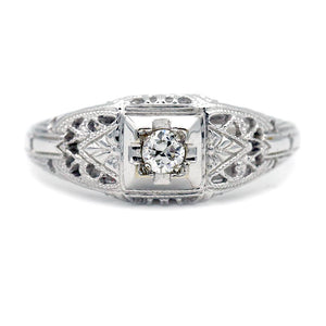 Art Deco .15 CTW Filigree Mine Cut Diamond Vintage Engagement Ring