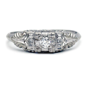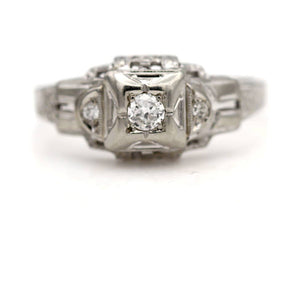 Art Deco .18 CTW Old Euro Cut Diamond 14 Karat White Gold Vintage Diamond Ring