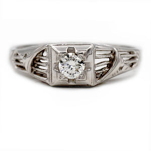 Art Deco .15 CTW Filigree European Cut Diamond Vintage Engagement Ring