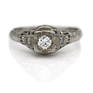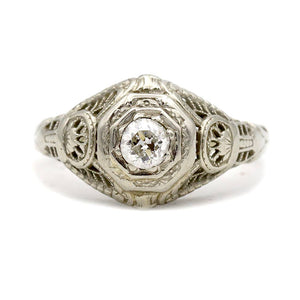 Art Deco .25 Ct Intricate Solitaire Antique 18 Karat White Gold Engagement Ring