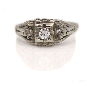 Art Deco .20 CTW Geometric Square Vintage Engagement Ring