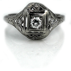 Art Deco .25 CTW Square Antique Engagement Ring Filigree Engravings