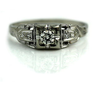 Art Deco .25 CTW Transitional Cut Diamond 14 Karat White Gold Antique Engagement Ring