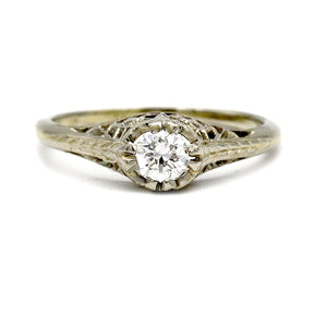 Intricate Vintage .30 CT Art Deco Diamond Solitaire Engagement Ring