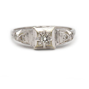 Antique .14 CTW Geometric Square Euro Cut Diamond Vintage Engagement Ring