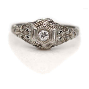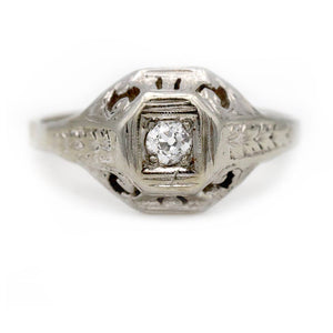 Antique .20 CTW 18 Karat White Gold Diamond Filigree Art Deco Solitaire Engagement Ring