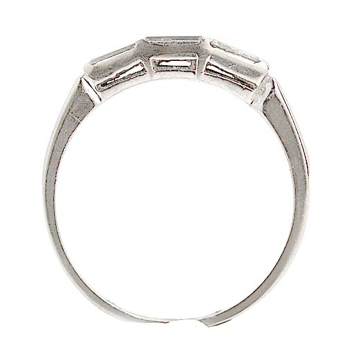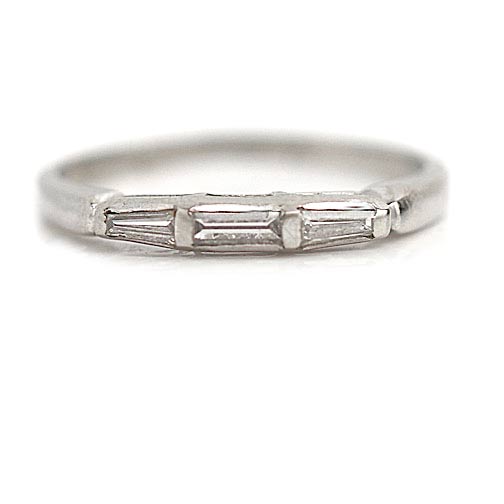 Stefania is an original vintage wedding band featuring 3 baguette cut diamonds weighing .25 carat (G color and VS2 clarity). Crafted in the 1970s in 14 kt white gold. Perfect for stacking or to wear with your vintage engagement ring! In very good condition.