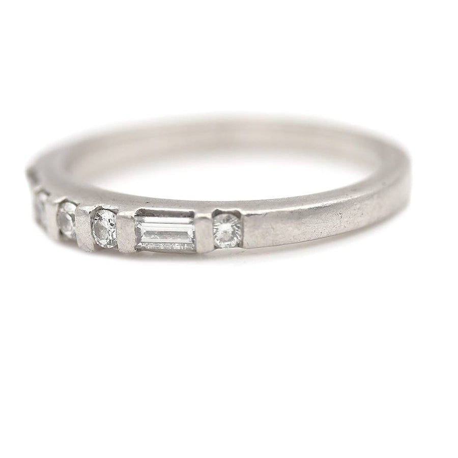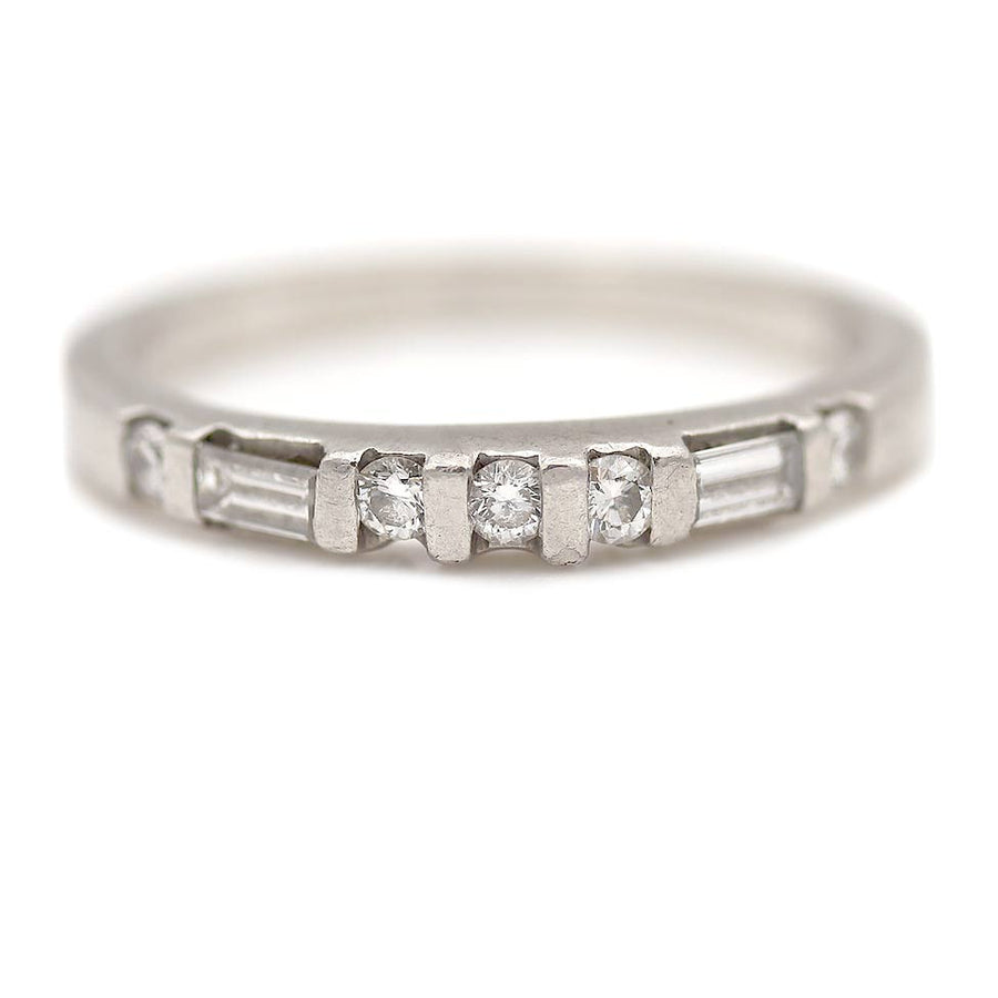 Mid-Century .30 CTW Platinum Baguette Round Diamond Vintage Wedding Band