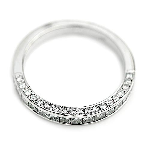 Shellie T is a classic vintage estate wedding band, featuring 15 channel set princess cut diamonds along with 20 glittering round cut side gallery accent diamonds. Crafted in the 1990's in 14 kt white gold. Perfect to wear alone or stack with other vintage bands. In very good condition.