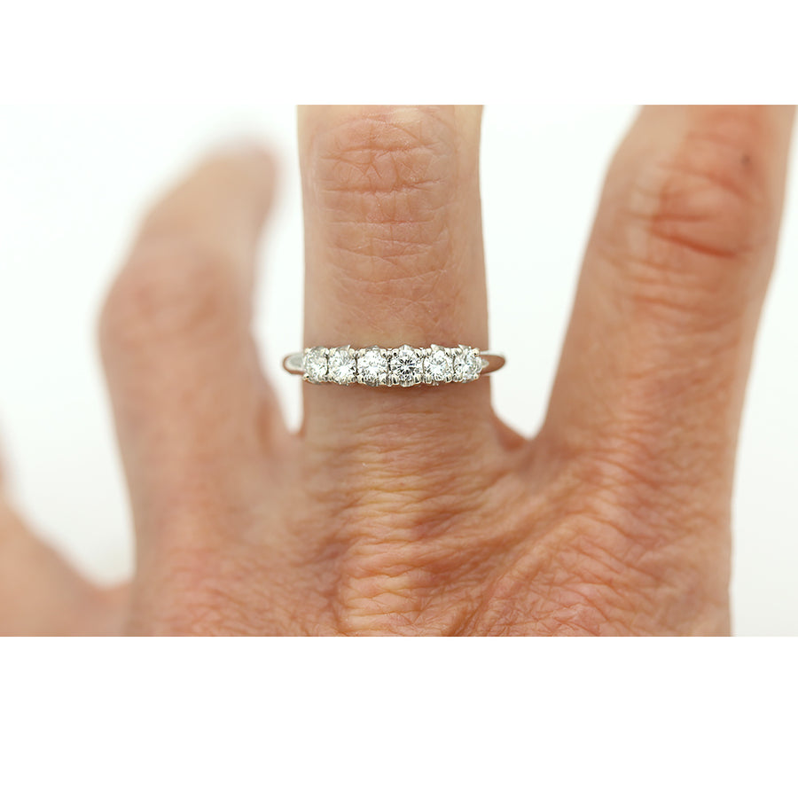 Mid Century Vintage 6 Stone Round Diamond Wedding Band