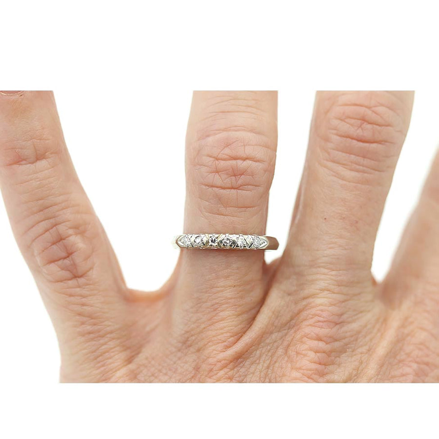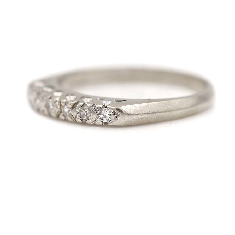 Vintage 1950s Prong Set Diamond Wedding Band in 14 Karat White Gold | .15 CTW