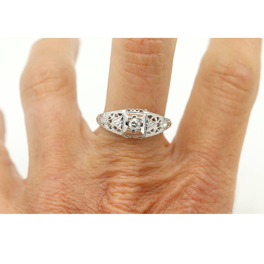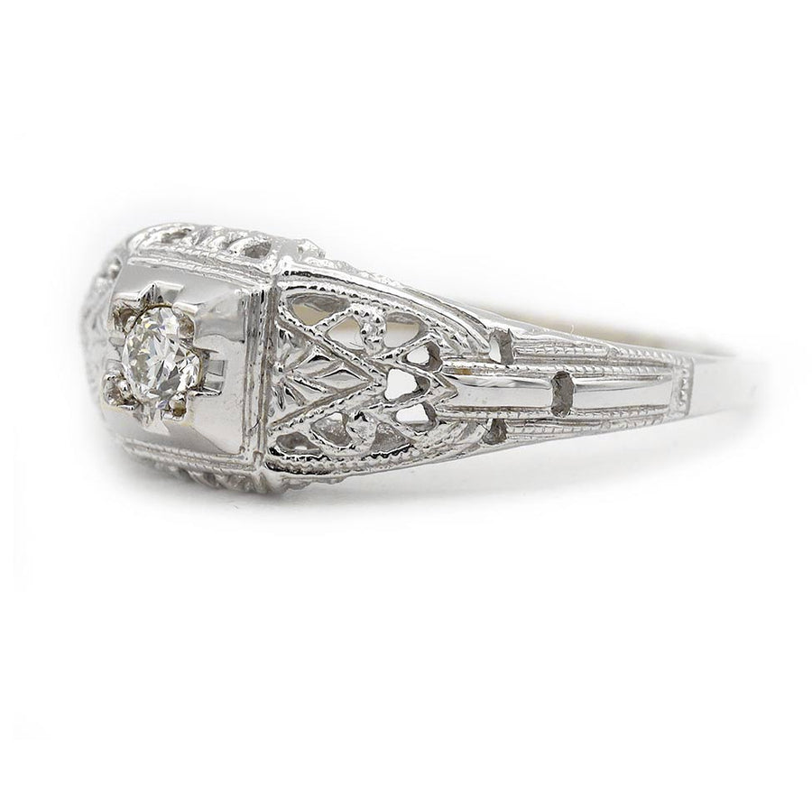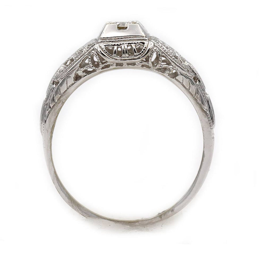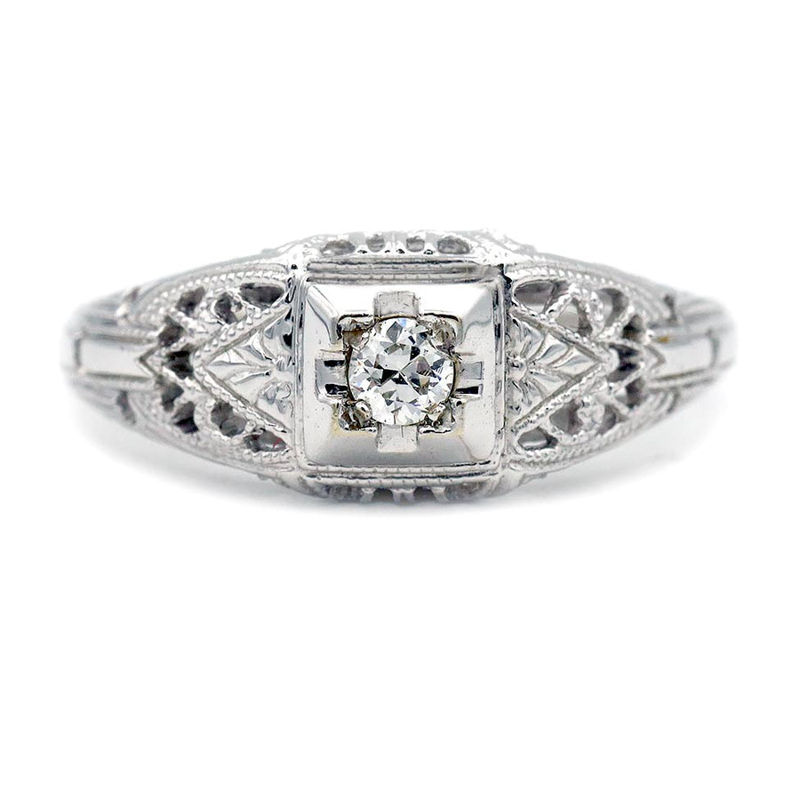 Art Deco .15 CTW Filigree European Cut Diamond Vintage Engagement Ring