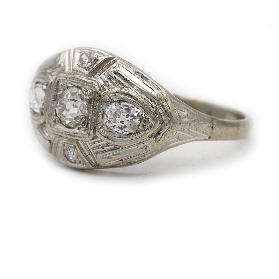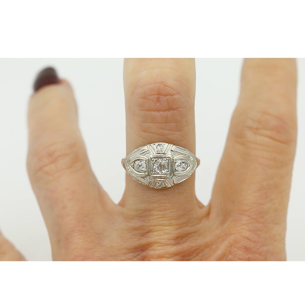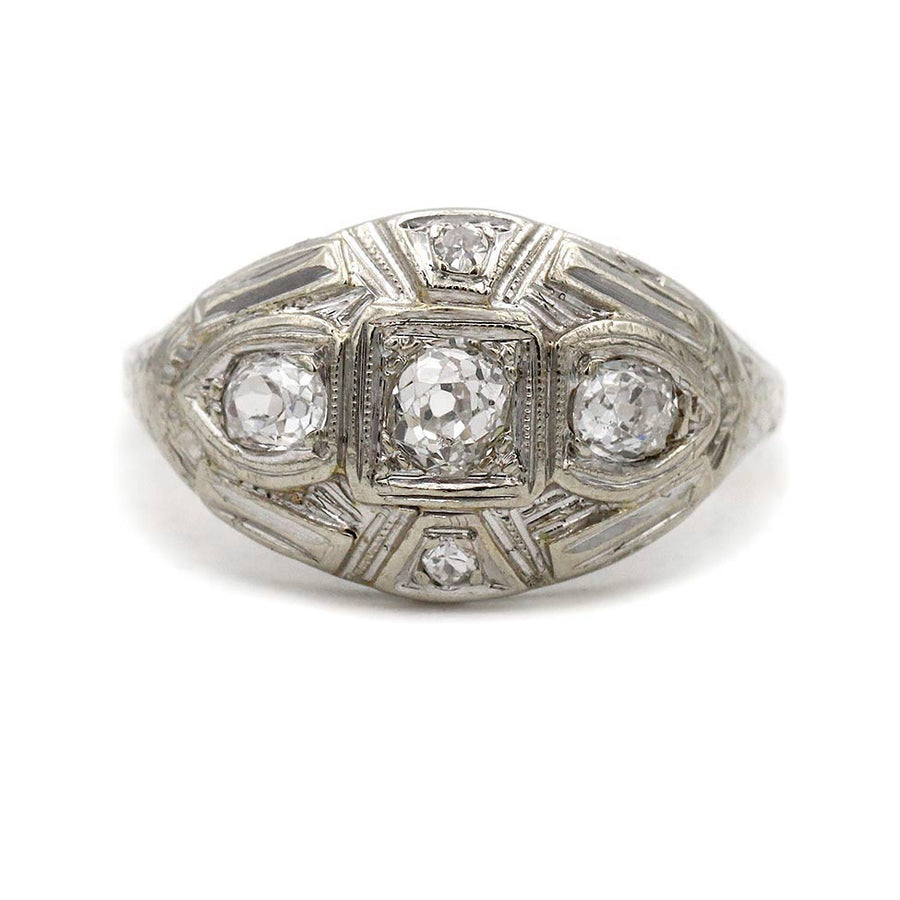 Art Deco .70 CTW 14 Karat White Gold Antique Three Stone Engagement Ring