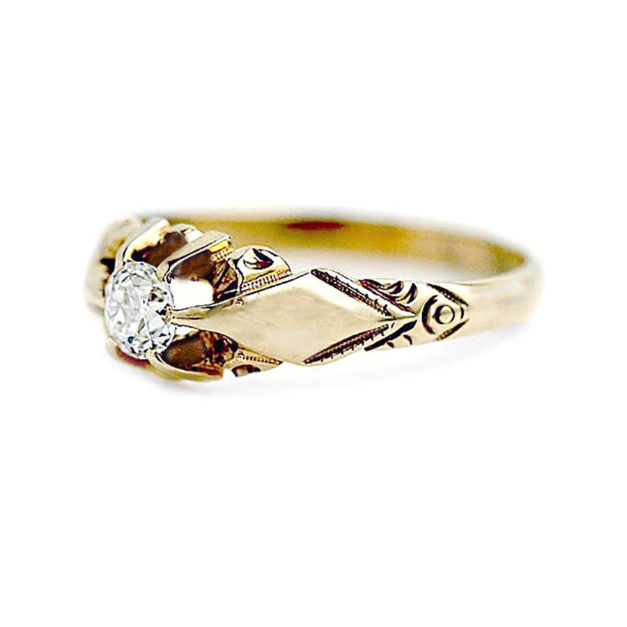 Victorian .25 CT Old European Cut Diamond Engagement Ring | Antique Rose Gold