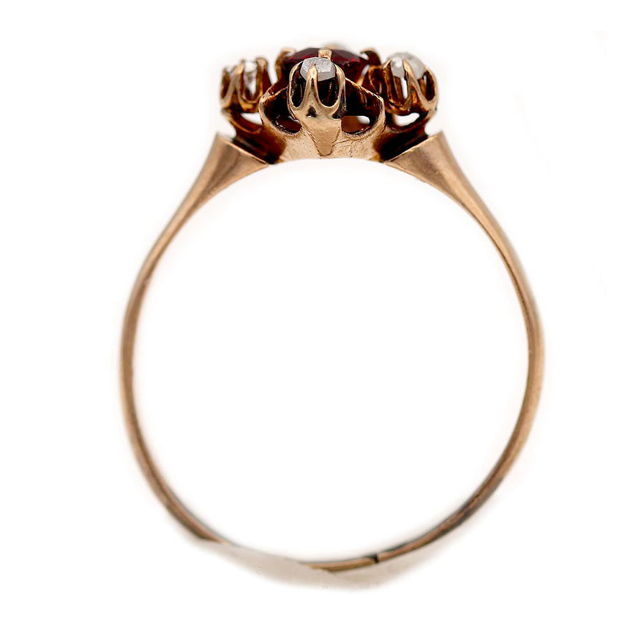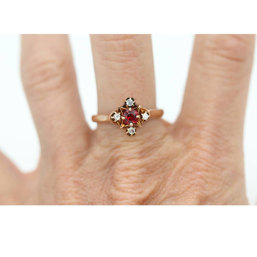 Victorian Red Spinel Engagement Ring with Rose Cut Diamonds, 10K Gold