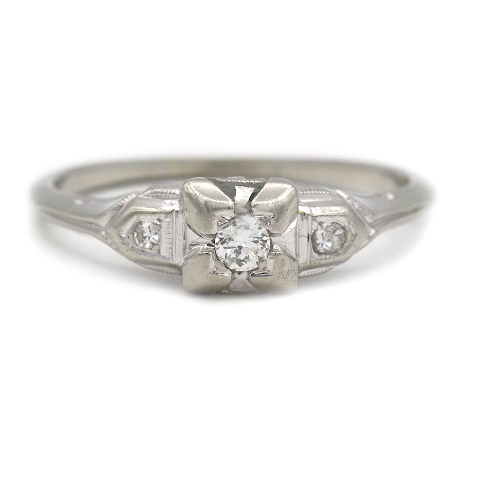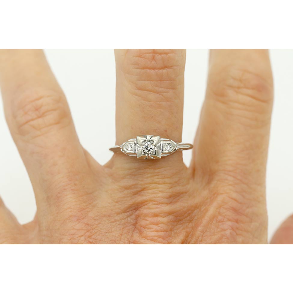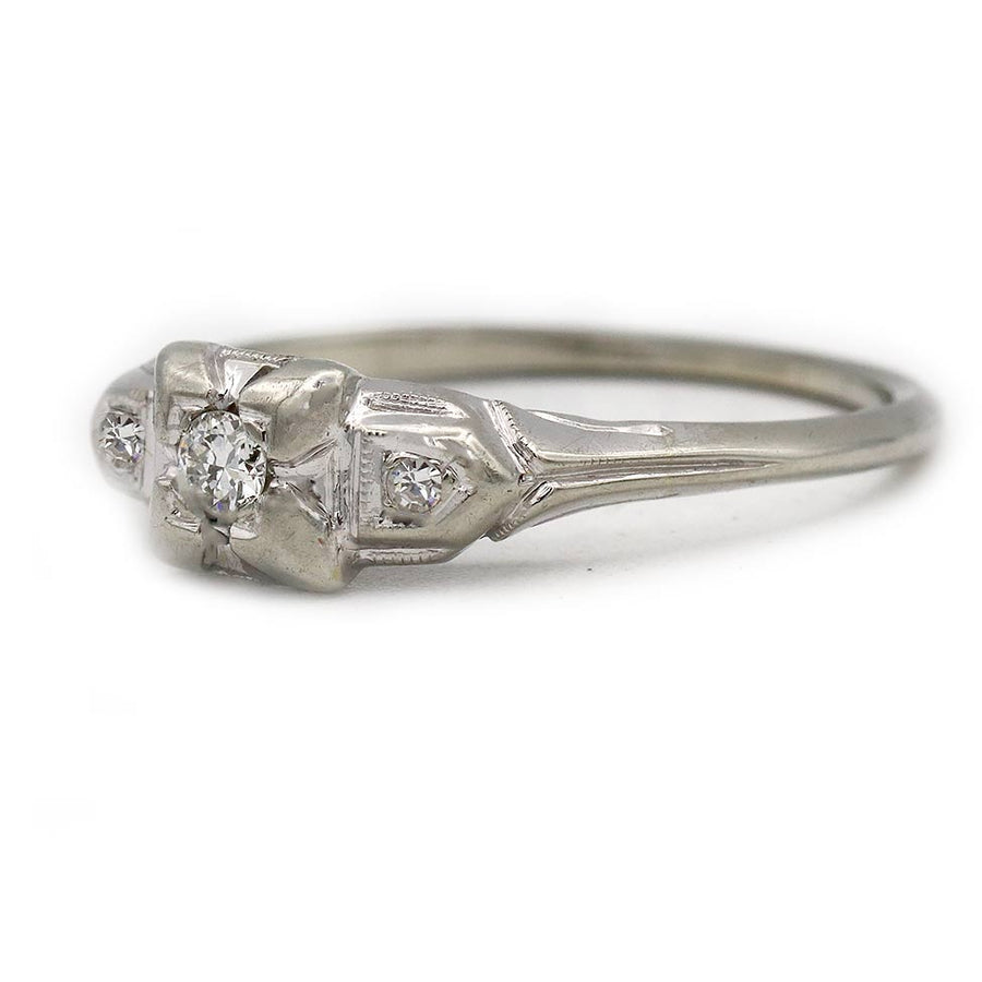 Vintage .19 CTW Old European Cut Diamond 18 Karat White Gold Art Deco Engagement Ring