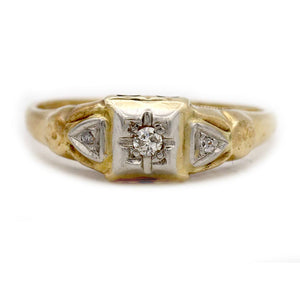 Mid-Century Minimalist .20 CTW 14 Karat Two Tone Vintage Diamond Engagement Ring