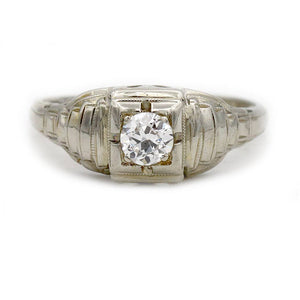 Antique .40 CTW Solitaire 18 Karat White Gold Old European Cut Art Deco Engagement Ring