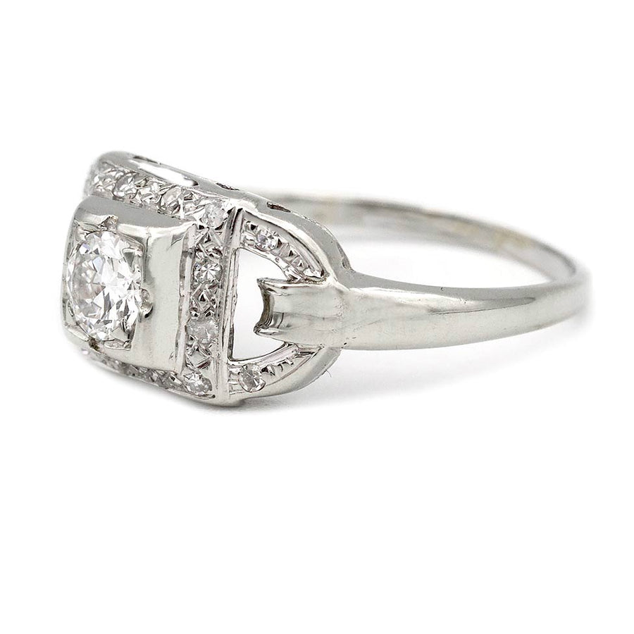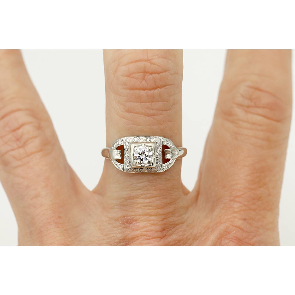 Antique .54 CTW Old European Cut Diamond 18 Karat White Gold Art Deco Engagement Ring