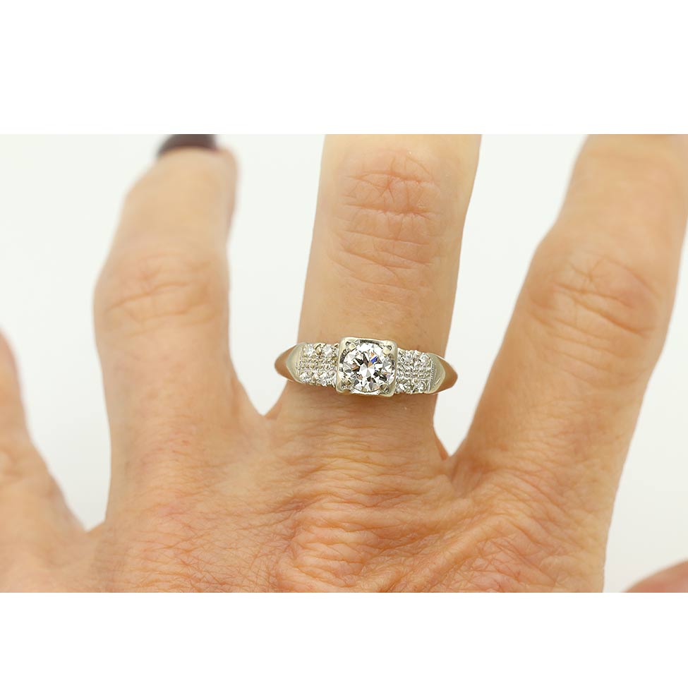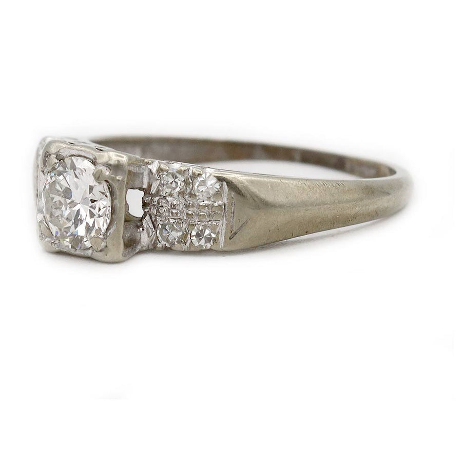 Antique .77 CTW Old European Cut Vintage Diamond Engagement Ring with Side Stones