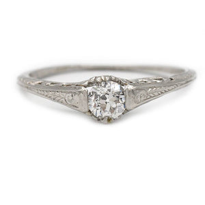 Art Deco .35 CT Old European Cut Diamond Engraved Solitaire Vintage Engagement Ring