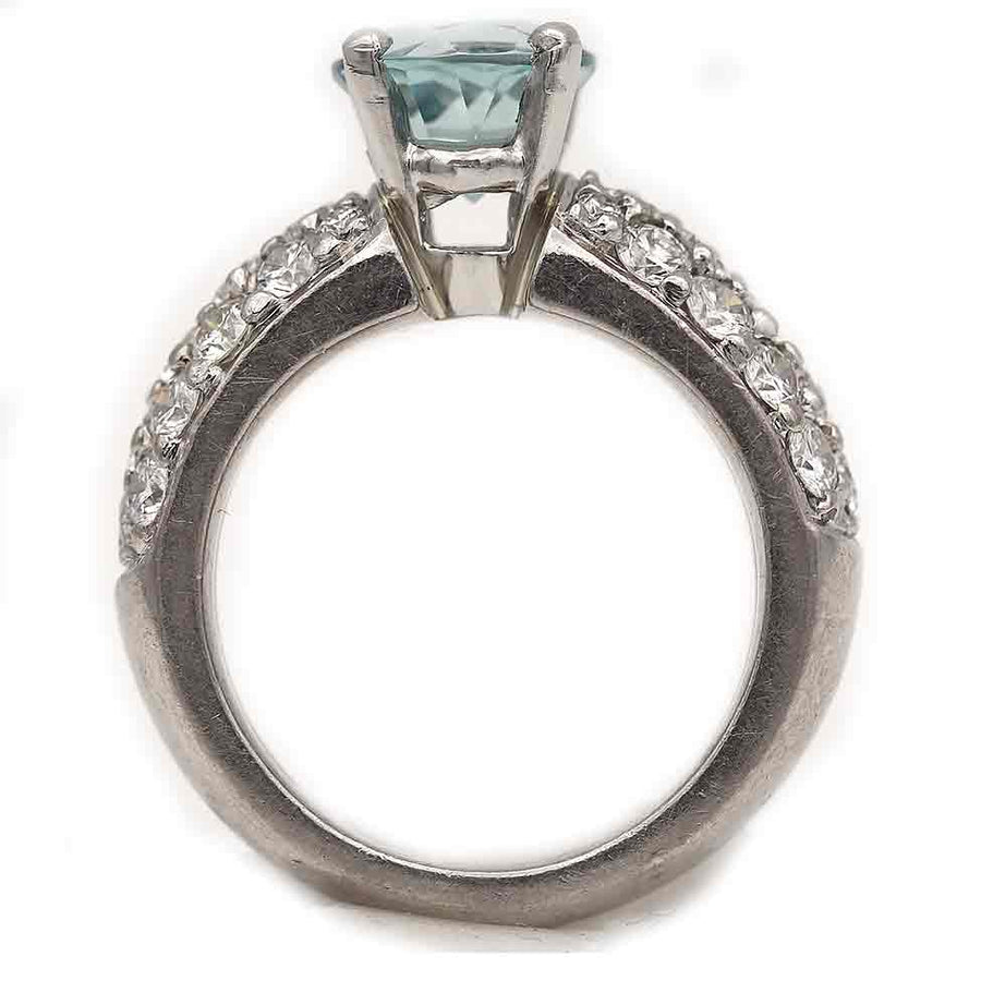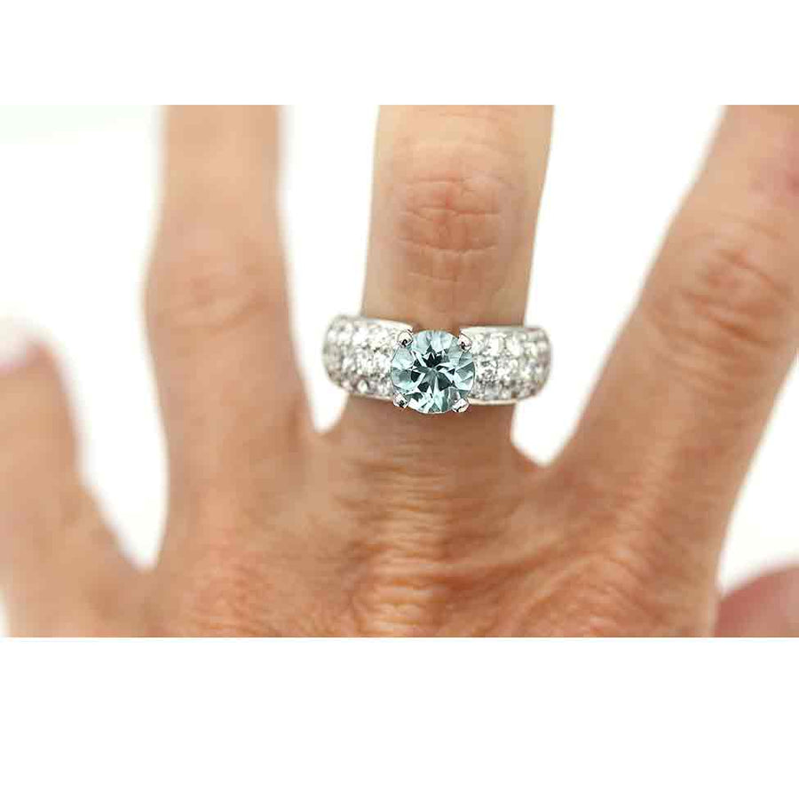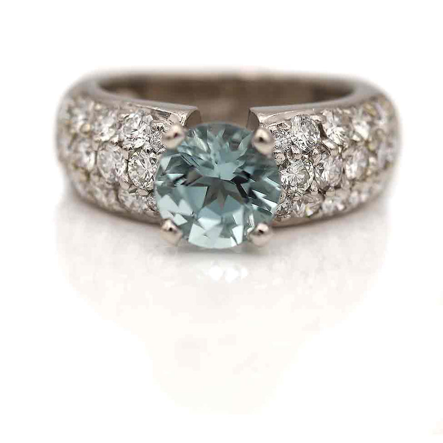Mid-Century 4.00 CTW Round Cut Aquamarine and Diamond Pave Vintage Engagement Ring