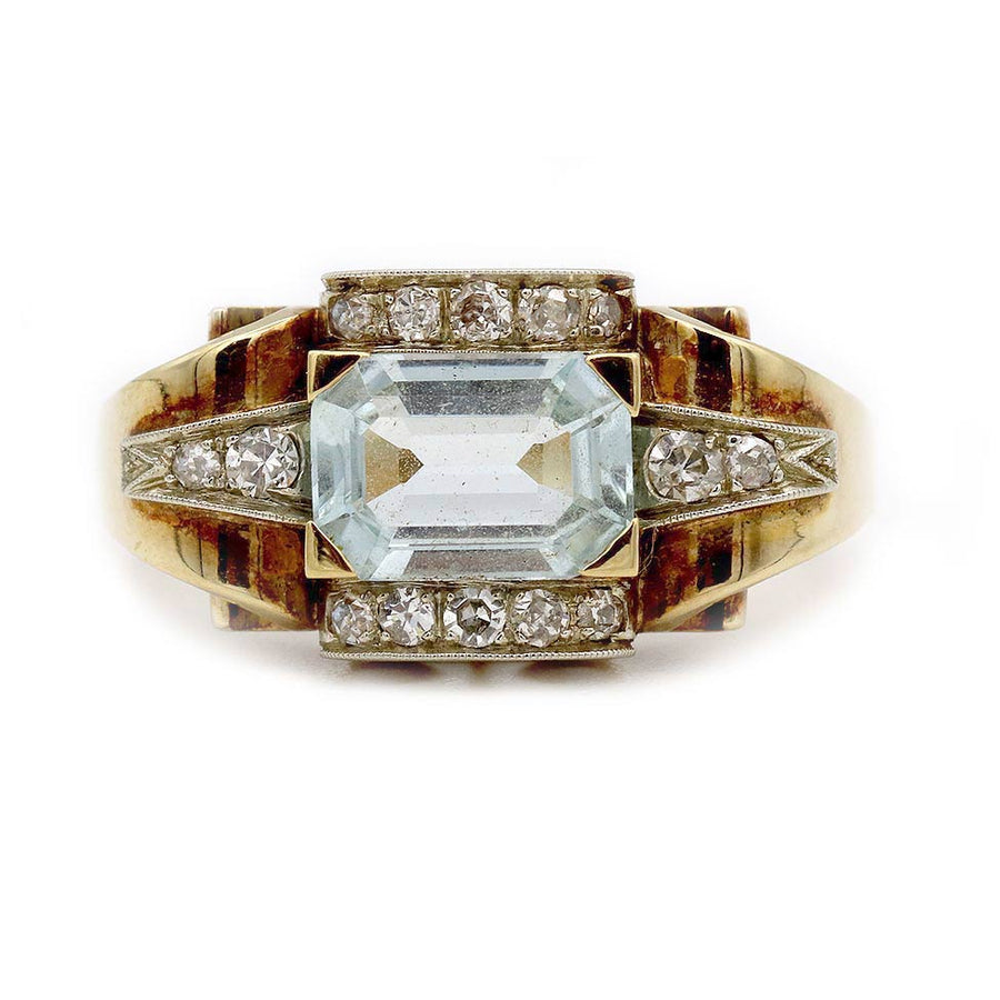 Retro 2.00 CTW Emerald Cut Platinum 14 Karat Aquamarine & Diamond Gemstone Engagement Ring