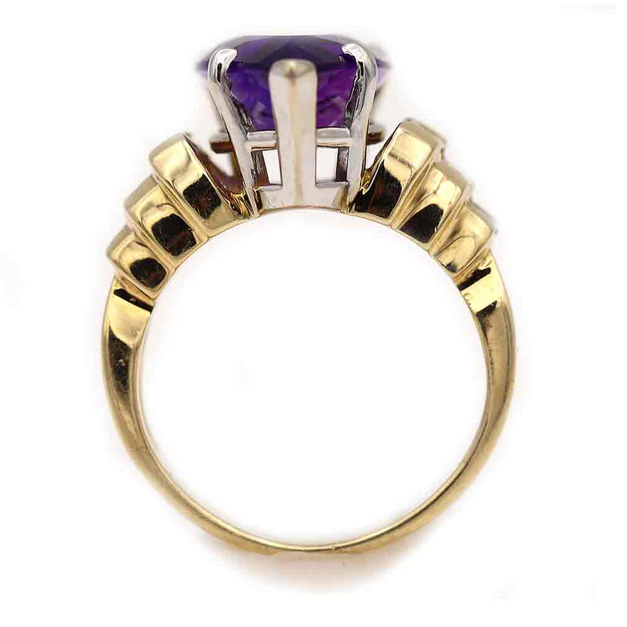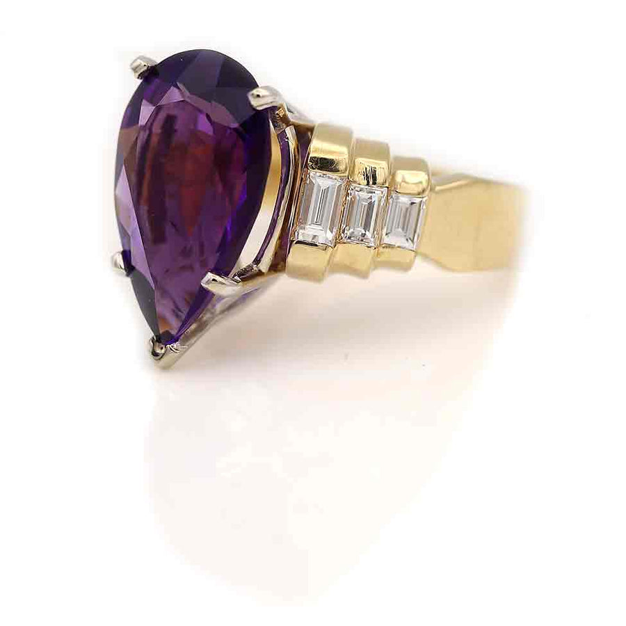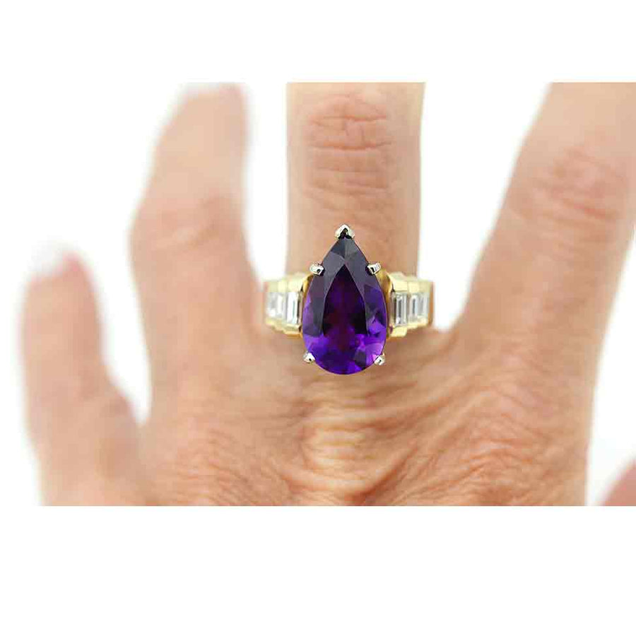 Vintage Pear Shape Amethyst & Baguette Diamond Engagement Ring | Yellow Gold | 1970s