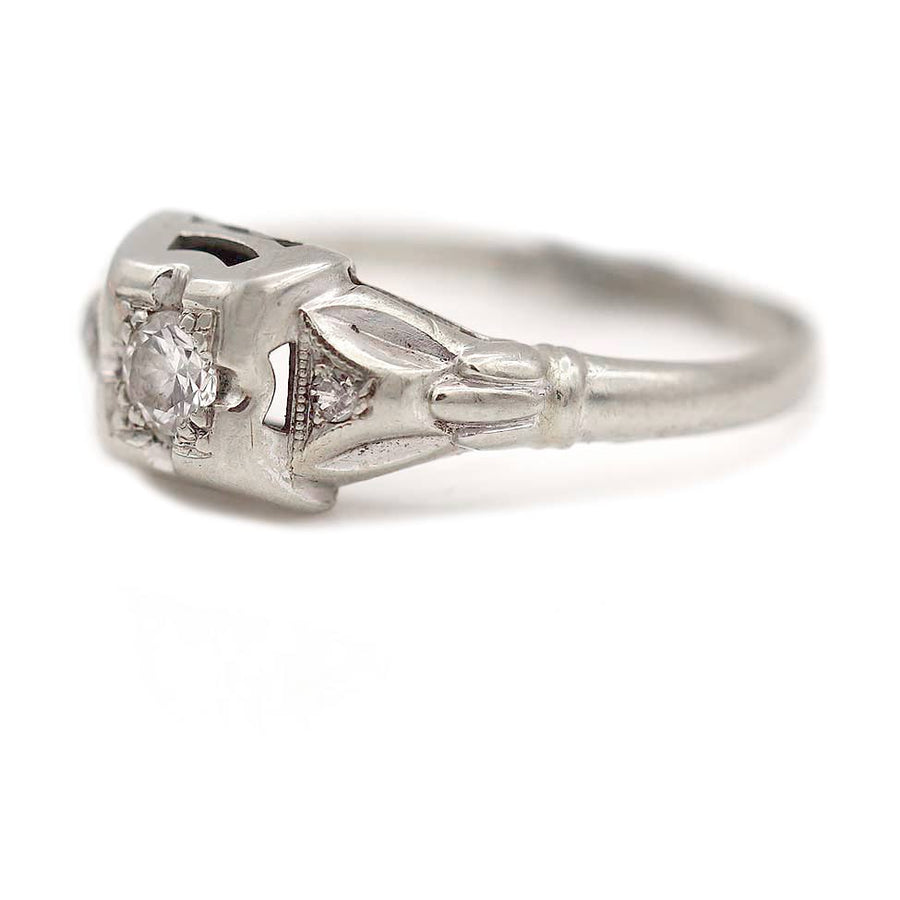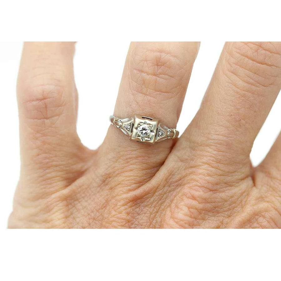 Vintage 1940s Old European Cut Diamond Ring .10 CTW | Geometric Square 18K White Gold