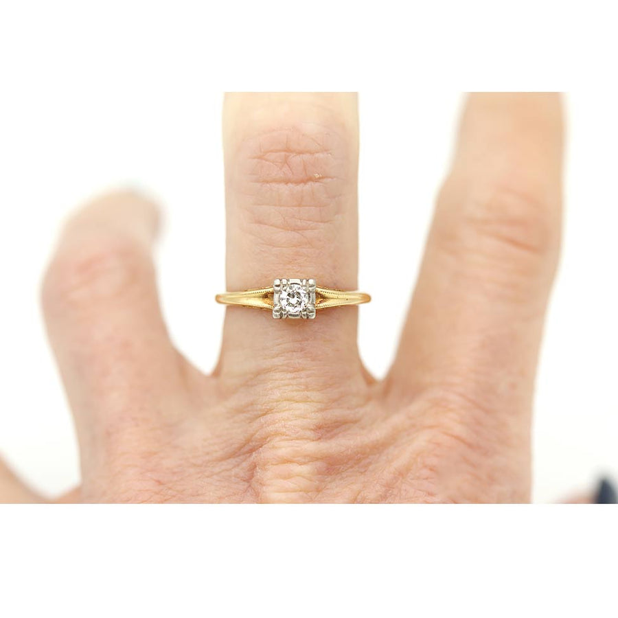 Victorian .15 CTW Old European Cut Solitaire Engagement Ring in 14 Karat Two Tone Gold