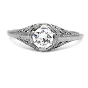 Art Deco .45 CTW Old European Cut Diamond Solitaire Vintage Filigree Engagement Ring