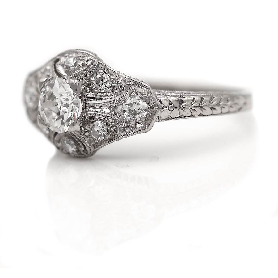Antique Platinum .61 CTW Old European Cut Diamond Art Deco Engagement Ring